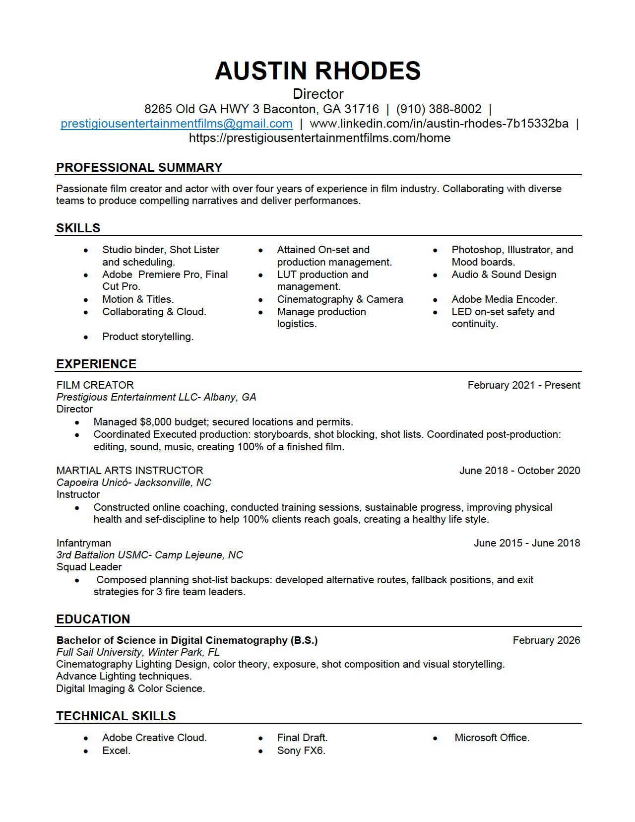 Austin J. Rhodes is an emerging talent in the film industry, known for his work as an actor and filmmaker. He honed his careerĀ from the Atlanta area in Georgia, a region that has become a vibrant hub for film and television production in recent years. Growing up in a creative environment, Rhodes developed a passion for storytelling and performance early on, which led him to pursue a career in acting. His dedication to honing his craft has allowed him to take on diverse roles across various genres, showcasing his versatility and commitment to the art of performance.